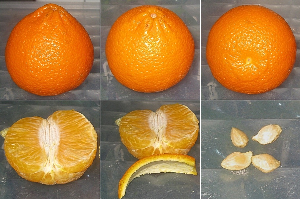 Хорошо виден отличительный признак данного тангора, это круглый наплыв кожуры на вершинке плода. Так называемый результат скрещивания с пупочным апельсином. Вычитал дополнительную информацию о нём. Рядом с ним нежелательно располагать Нова и Клеменулес во избежании слишком большой костлявости.