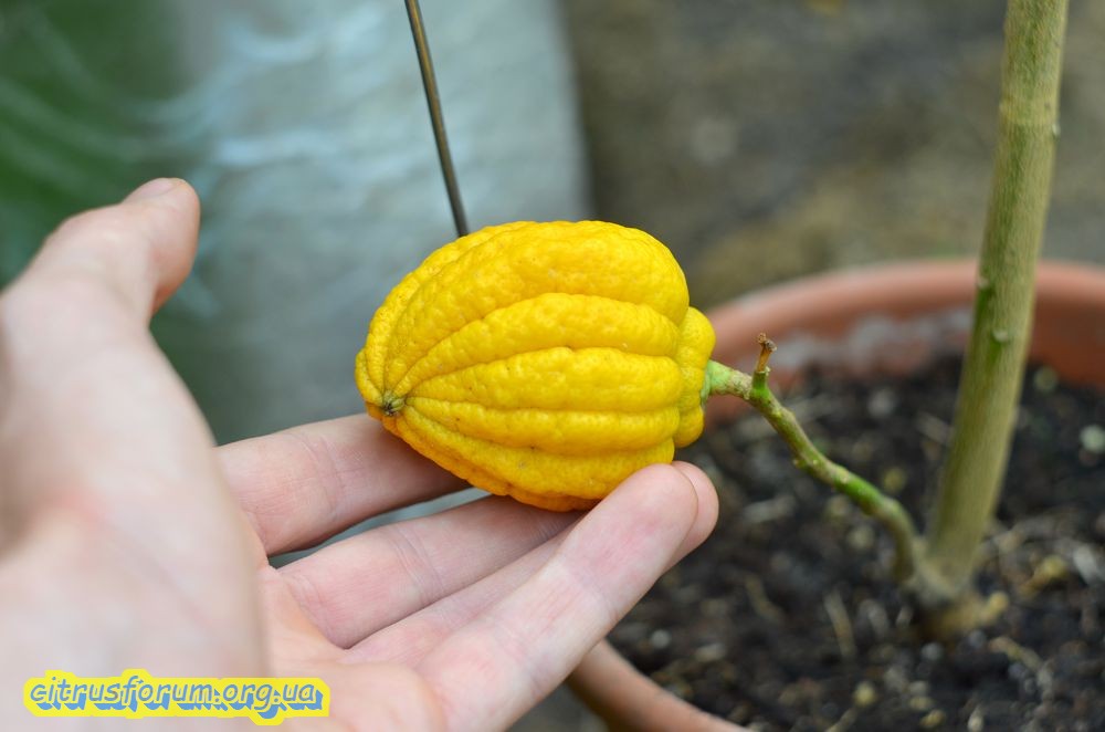 В минувшем году впервые заплодоносил цитрон Рука Будды. "Ручка" оказалась небольшой, а "пальчики" собраны в щепоть) Может, такая разновидность.