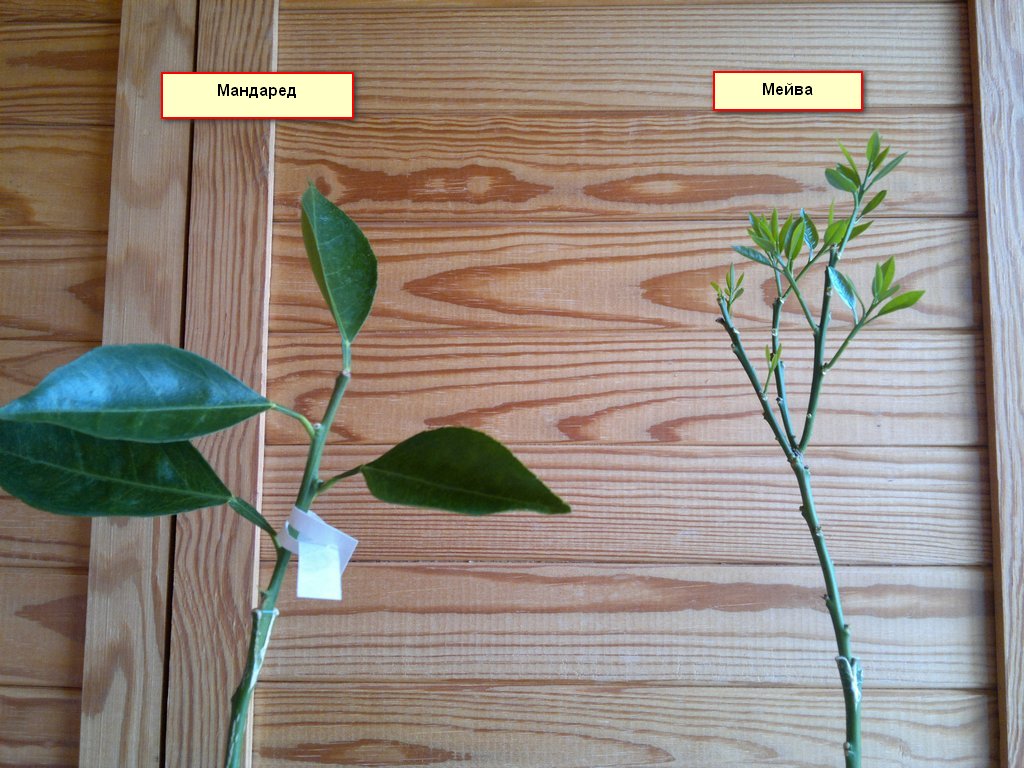мой (dandr)арий полнился редкими новичками: Танжело Melinghina и гибрид MANDARED. А также воспилнилось два сорта, которые раньше у меня пропали: апельсин Фрагола и кумкват Мейва. Так вот Мейва и Мандаред привиты на цитрумелло на высоте 86 см. Хотел высокий штамб для горшка, что стоит на полу, а крона над подоконником балкона. Черенок Мейвы был с кучей листвы и всю ее скинул, но уже есть молодой прирост. Мандаред был с 4 листиками и довольно быстро выпустил новый прирост, но сбросил его в тепличке (в этом не очень урочном прививочном сезоне такое случалось на разных прививках. Связываю с тем, что прививки стоят на окне и возможно перегреваются во время кратковременного появления "зимнего" солнца. Обычно прямого солнца избегаю.). А вот Фрагола и Меленхина привиты в крону одного из зацвевших в прошлом году сеянцев, о котором писал здесь: http://citrusforum.org.ua/viewtopic.php?p=21383#p21383. Вот теперь думаю, как поступить с третьей "дикой" веткой? Отрезать или что-то на нее привить?-