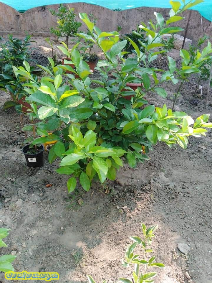 С лева "Волкамерин" (Тинтори), а с права "Tarocco. S. Alfio" (Tинтори) весь в приросте и проявляются бутоны.