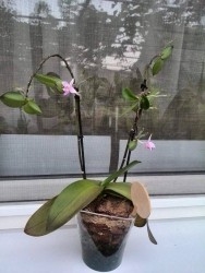 Фаленопсис эквестрис (Phalaenopsis equestris)- капец забавная орхидея, цветение заканчивается появлением и ростом деток, причем эти крохи умудряются цвести сразу же)