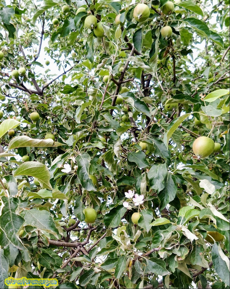 Интересный феномен: сегодня, уже в двух местах видел яблони, которые стоят с плодами и при этом цветут. Когда яблони зацветают осенью или когда весной теряют весь прирост, отращивают его заново и при этом цветут, это не так уж удивительно, а тут вполне благополучные деревья, в начале июля цветут , загадка однако