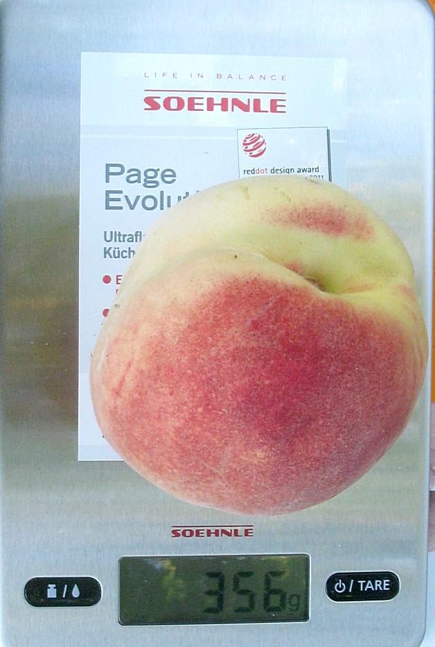 Ну и я подкину, правда съели две недели назад. Сорт не помню, может ананасный, так как присутствовали вкусовые нотки. Вес плода 320 гр. Фото на весах не делал, поверьте на слово.
