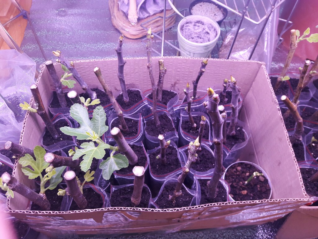Здравствуйте уважаемые форумчане. Продолжаю отчет об укоренении инжира у вермикулите с подогревом пятки черенков. Уже часть саженцев пересадил в емкости побольше. С момента укоренения прошло 1 месяц и 12 дней. Саженцы стоят под дополнительным освещением.