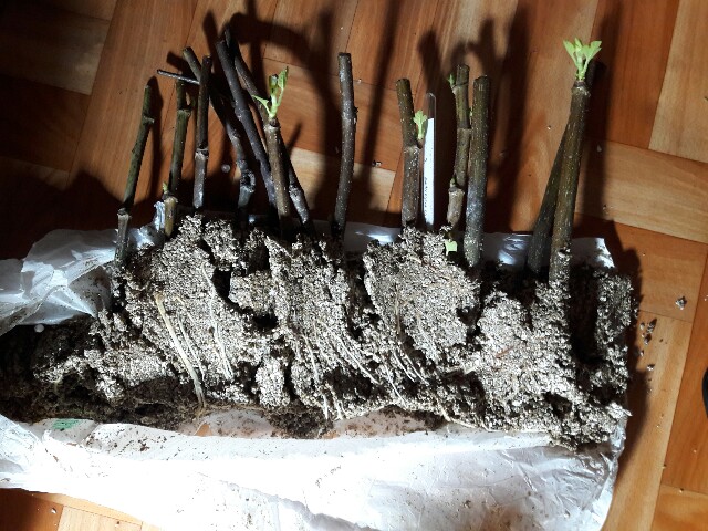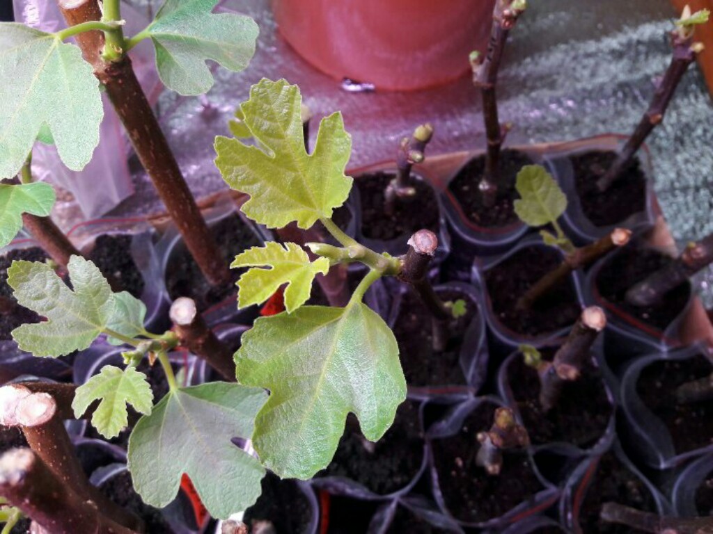 Здравствуйте уважаемые форумчане. Продолжаю отчет об укоренении инжира у вермикулите с подогревом пятки черенков. Уже часть саженцев пересадил в емкости побольше. С момента укоренения прошло 1 месяц и 12 дней. Саженцы стоят под дополнительным освещением.