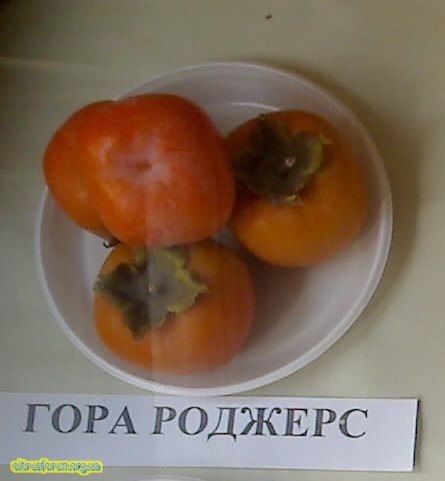Форма Роджерс (Сіянець №3). Сіянець Нікітської бордової. Плоди великі (до 270 г), плоскі, в проекції округло-чотирикутні. М'якоть твердих плодів терпка. Зрілий плід оранжево-червоний. М'якоть повідло-подібна, помірно-солодка, з тонким приємним ароматом. Плоди жовтіють на початку листопада. Урожайність 7-річного дерева - 25 кг.