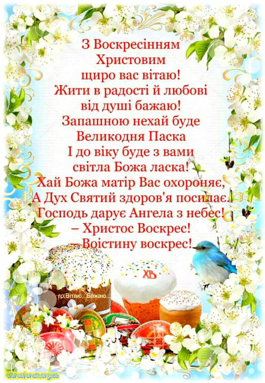 Вітаю зі святом Воскресіння! Нехай радість цього світлого дня переповнить ваші серця та домівки, а благословення Христове заповнить ваше життя миром, щастям і благополуччям.
