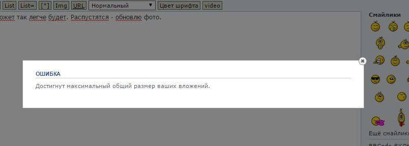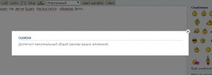 "Ошибка. Достигнут максимальный размер ваших вложений"