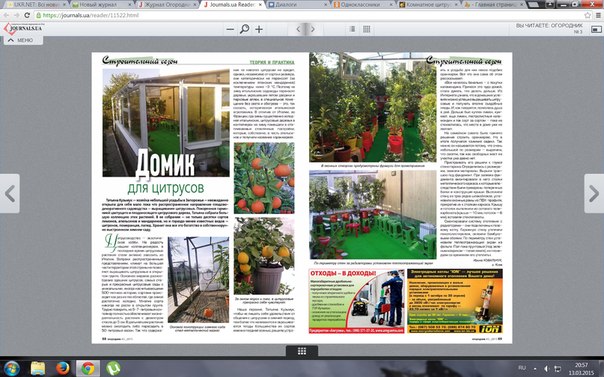 Известность наших форумчан, как опытных цитрусоводов, постепенно выходит за рамки интернета. В 2015 году в журнале "Огородник" № 3 опубликована статья о нашей Татьяне.