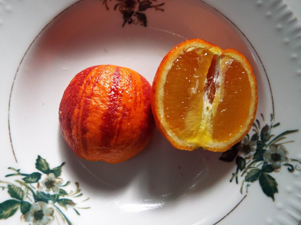 Сегодня решил попробовать самый окрашенный плод аркобалена. Кожура таки достигла своего сортового полосатого вида - прямо на персик похож. Мякоть более насыщенного цвета, чем например пупочный апельсин. Аромат сильный, апельсиновый с интересной примесью. По вкусу это явно апельсин, яркий, кисло-сладкий. Кислоты немного больше, чем у В.Навела, но примерно соответствует красным апельсинами типа Сангвинелли и Моро. Чувствуется небольшое послевкусие лесных ягод - ежевики или малины.