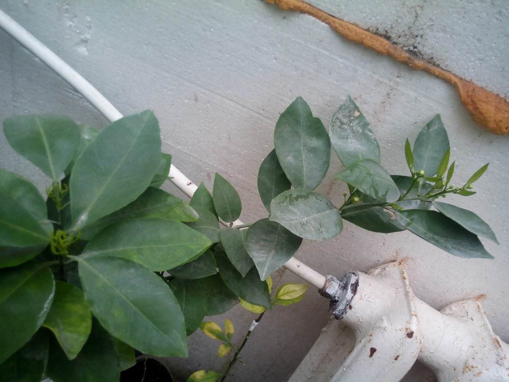 У апельсина В.Навела проявилась интересная особенность - ближе к батарее цветы, дальше - побеги