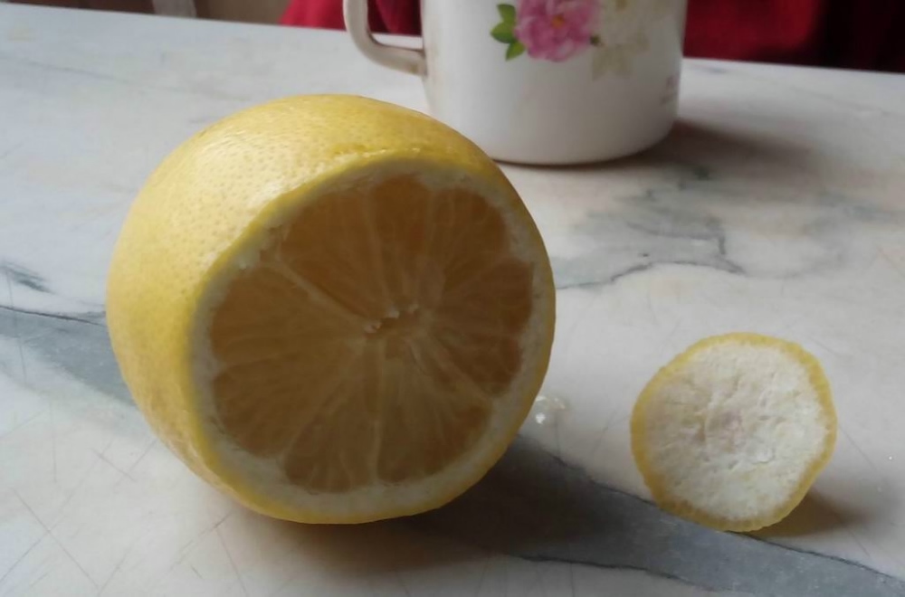На вкус - превосходный сочный лимон, кожура даже в постоявшем чае не горчит - значительно вкуснее и крупнее покупных лимонов