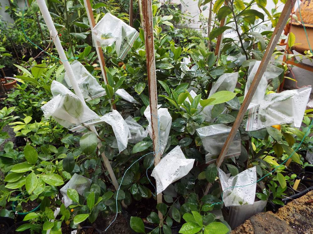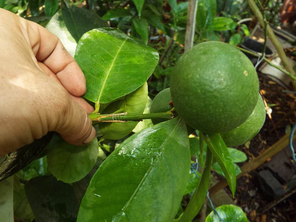 Прививка веточки мандарина уншиу Миагава с бутонами за кору на пандерозу - уже выросли крупные мандаринки