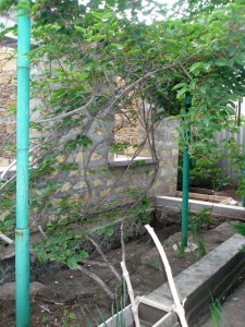 Мужчына актинидия оказался внутри теплицы. Огромный куст - уже больше десяти лет. Это я его покромсал немного, а так уже на стену недостроенного дома залез. Сомневаюсь, что удастся пересадить. На всякий случай поставил от него черенки. А то мои четыре женщины могут остаться без такого жениха.