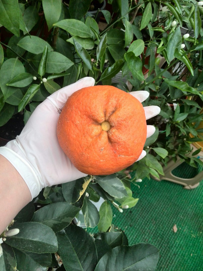 Выросло это чудо и вырастило плоды, плод похож на крупный мандарин, оранжевого цвета, внешне красивый.