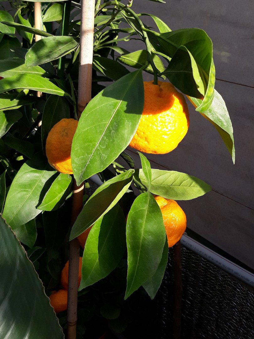 Воскресное декабрьское утро, солнечное очень даже, + 9 на улице, к вечеру хлынул ливень, но цитрусы успели понежиться в солнечных лучах.