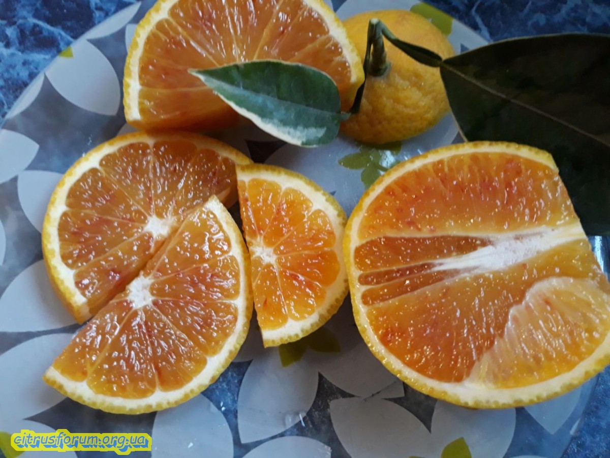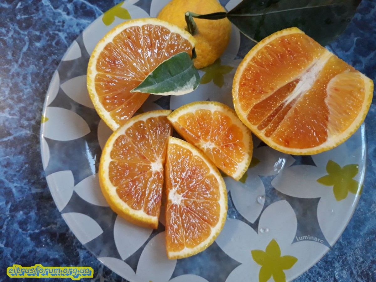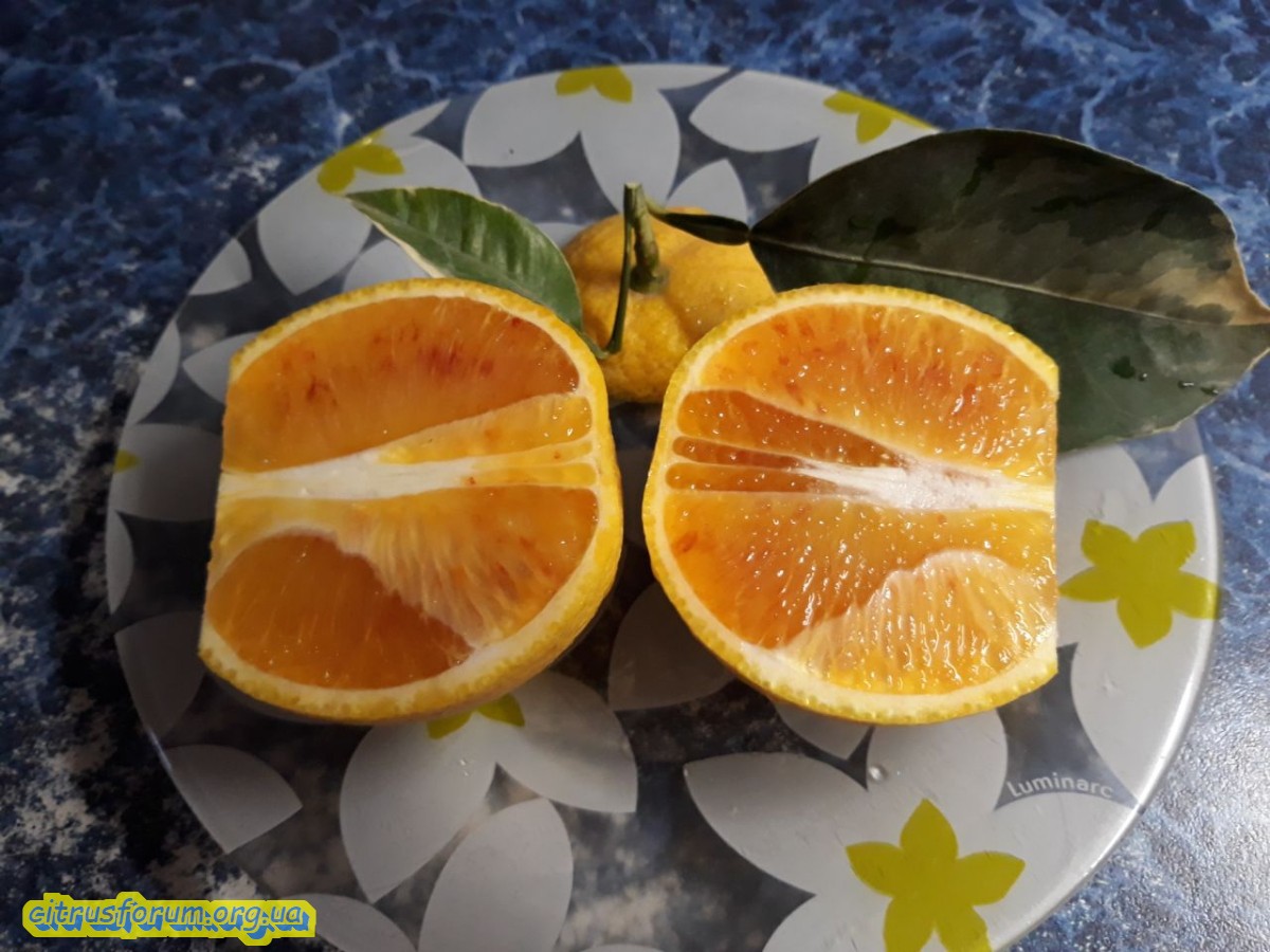 Тот который из Тинтори C. sinensis “Tarocco foliis variegatis tardivo” пока холостякует, сравнить не с чем.