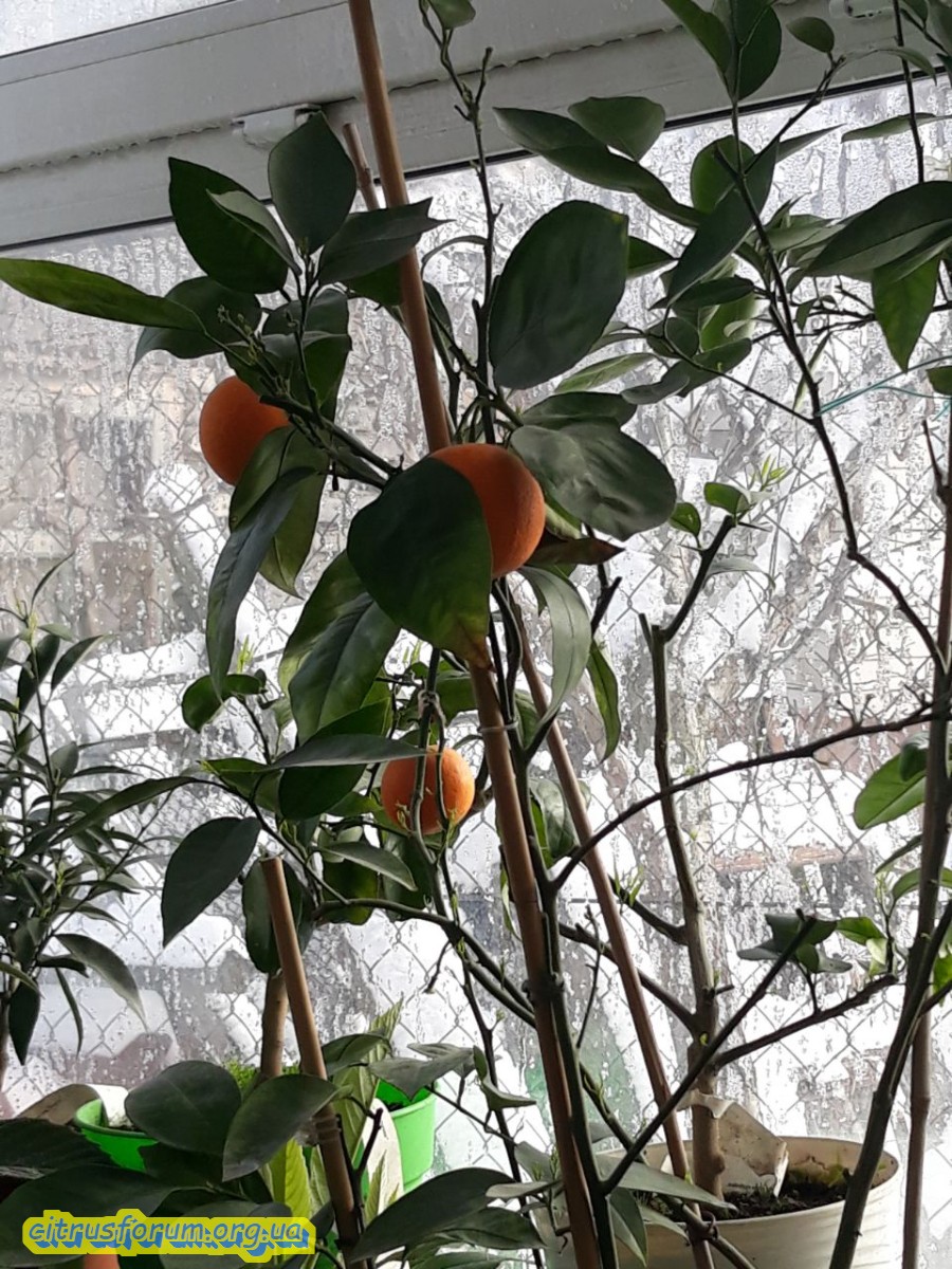 Плоды еще есть, ясно стало что сорт позднеспелый, сладости еще не добрал, но уже в принципе достаточно вкусный апельсин.