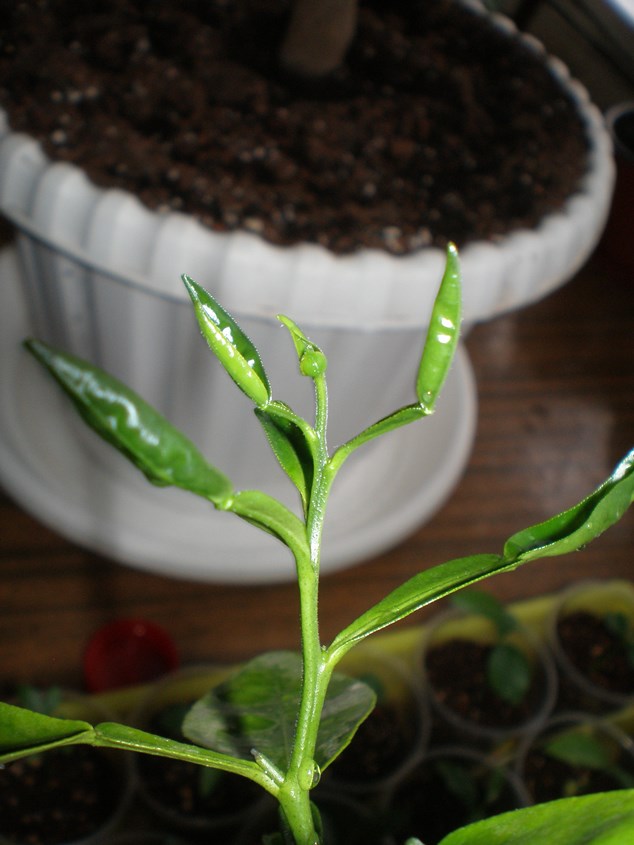 Здравствуйте, дорогие форумчане! Помогите разобраться с сеянцем грейпфрута(?) или апельсина. Год назад сеяла разные семена цитрусовых, чтобы в будущем использовать для подвоев. С весны до осени гуляли в открытом грунте на солнышке и под дождями. Осенью окрепших и с хорошей корневой рассадила по горшочкам. Зимовали на веранде при температуре от 7 до 12 градусов с хорошим освещением. Часть сеянцев привила культурными цитрусами. Сегодня искала подходящий сеянец для прививки и обнаружила на одном из них бутон цветочный. Такое бывает? Может, кто уже сталкивался с такой ситуацией? И перспективный ли он для дальнейшего плодоношения? Он еще и ветвится.