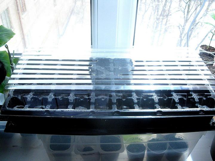 Добавлю только фото (стоит на теплом полу +26) Высеяны в насыпью, рядками. Потом буду рассаживать. :sh_ok: