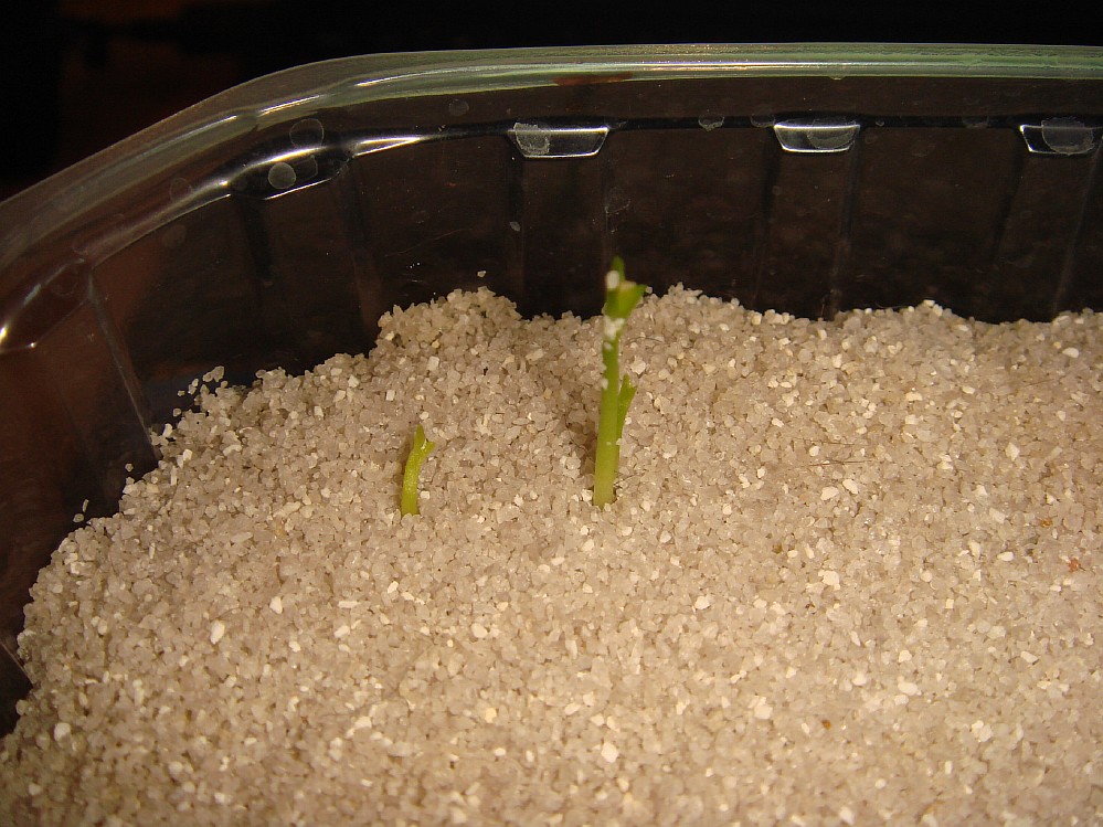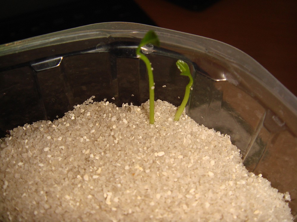 Покажу свои. Сегодня заметил. Посев был на Рождество. Сверху около 2 см песка, думаю вскоре полезет. Есть нижний подогрев (+26 по ночам) пока не досвечиваю, думаю через недельку поставить под свет.