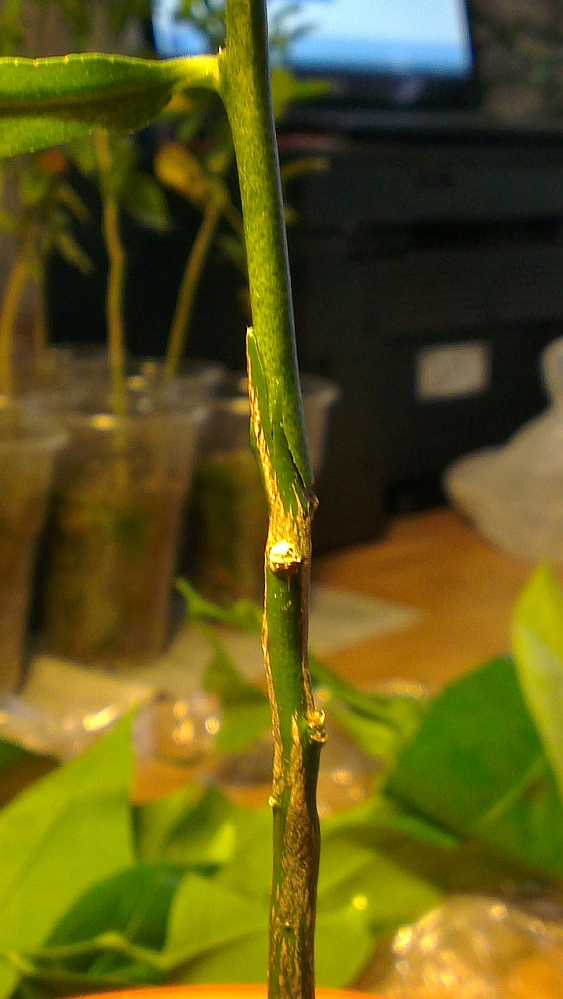 Полностью согласен. И тем не менее я сделал несколько прививок на стволах диаметром 5-6 мм. используя веточки цитрусовых, которые приехали из Чехии в мае. Из трёх две прижились.