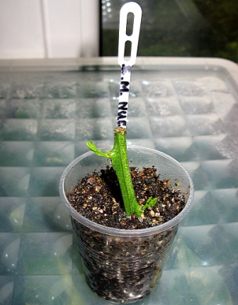 Здесь: http://citrusforum.org.ua/viewtopic.php?p=19714#p19714 писал по поводу примеров на тему без лиственных укоренившихся черенков. Сегодня в очередной раз на подобном черенке увидел начало прироста. Причём черенок укоренялся после обработки, весь в отметинах от клеща. И так, апельсин Sanguinello moscato nucellare 49-5-5, ещё февральской поставки черенков от Саши, ака Bersagliero. Саша, тебе привет и спасибо!