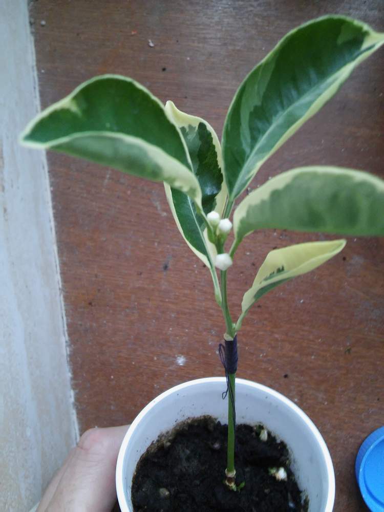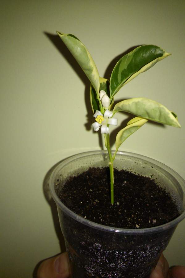 Покажу интересный случай из моей практики. Прививка вариегатного каламондина вроде бы успешно срослась, привой выдал бутоны