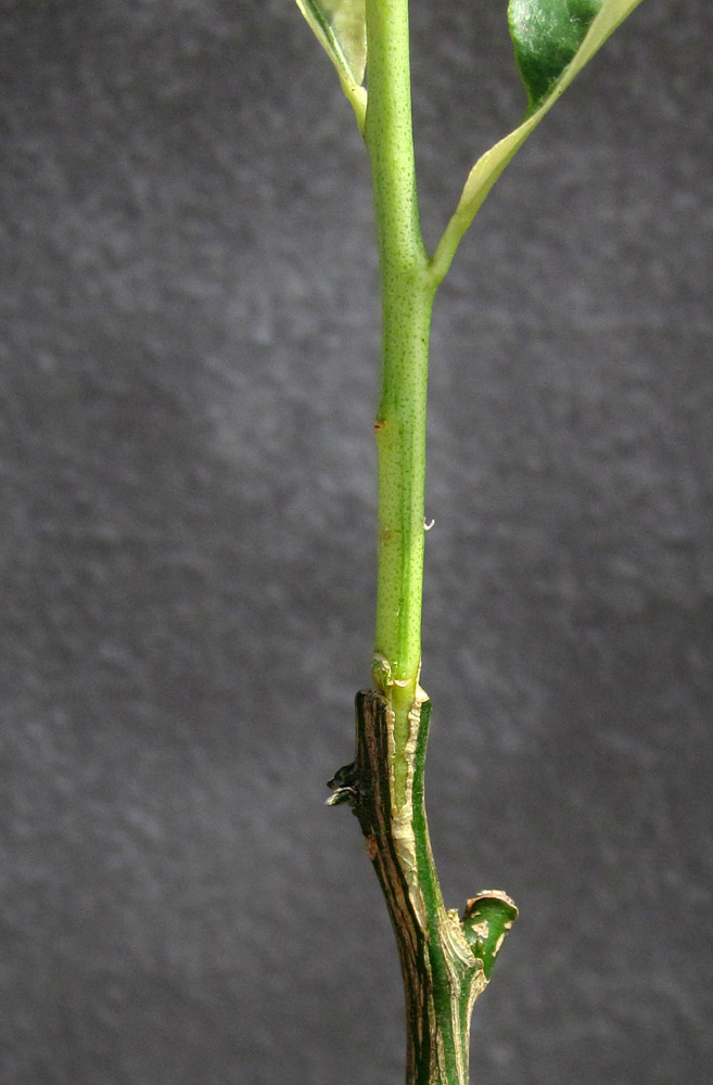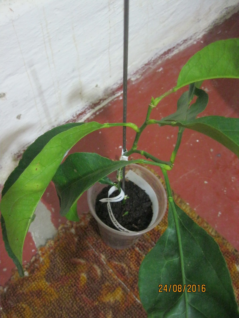 23 июля получил посылку с черенками от Саши и деревья от Алины !В посылке с деревьями оказался бонус в виде 2 черенков грейпа Марш Сидлес и лимон Химера!Лимон стоит на укоренении а вот грейп я привил на не укоренённый черенок макрофилы от Саши! Вот что вышло!Прошёл ровно месяц !
