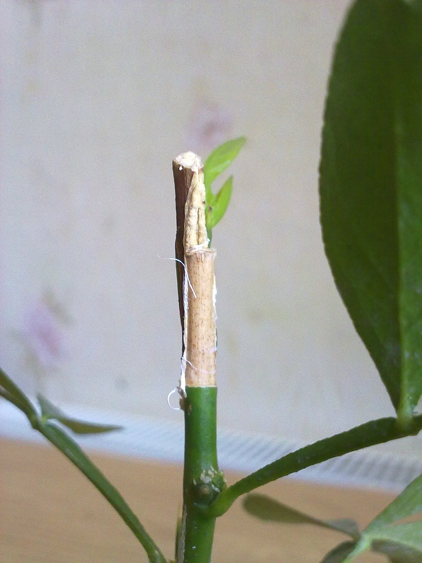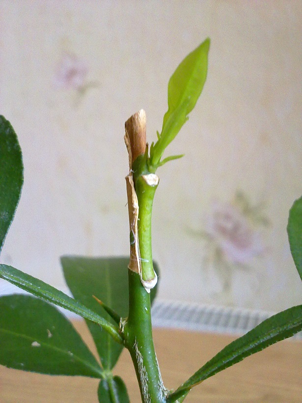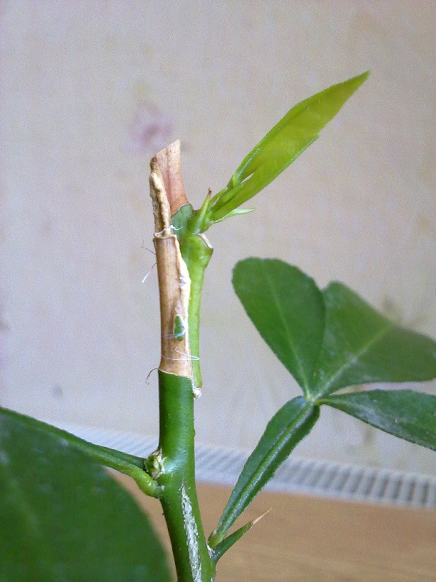 Есть у меня сделанная еще осенью прививка Лиметты Дольче Романа на цитрумелло, Вроде осенью хорошо прижилась, а затем практически за 2 дня усохла за исключением одной почки, ну все думаю прививке конец, решил, как понадобится повой использую, а она через пол года решила пойти в рост. До сих пор не пойму за счет чего она питается но явно хочет жить