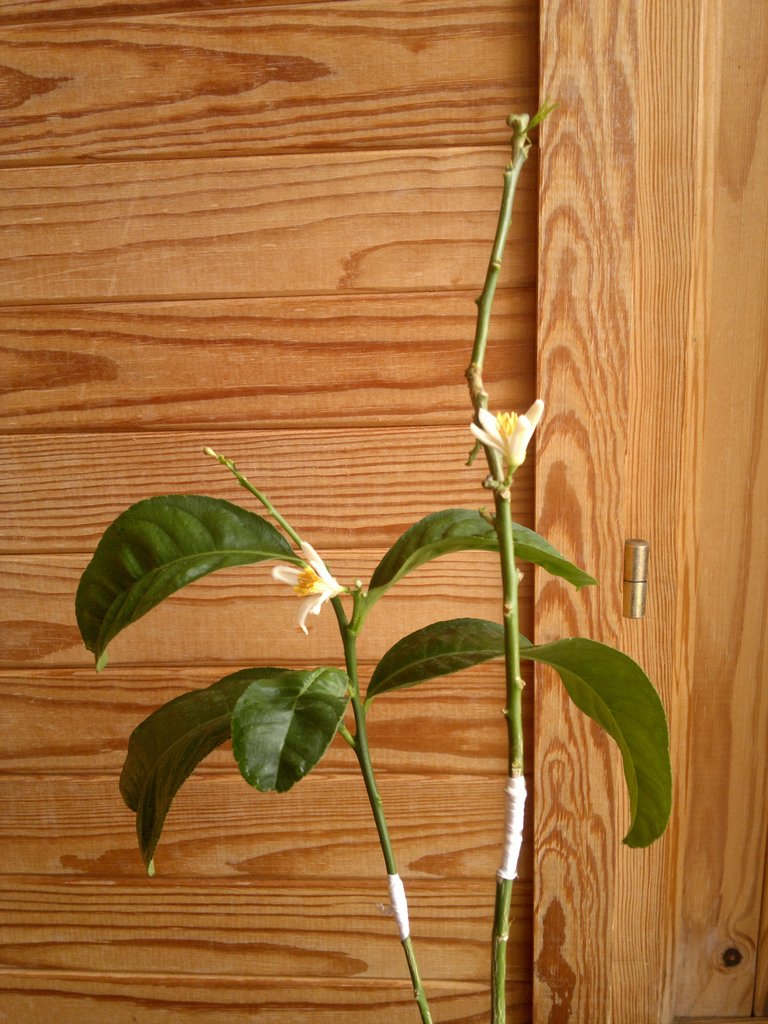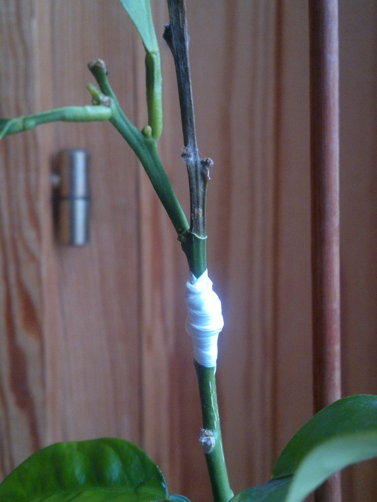 Ну что друзья, отчитываюсь. Так и не выжил этот лаймкват Апирено, Размотал прививку, вроде срослось. Через пару деньков, как обычно выставил на свободу. За два дня облетели листья и прививка (привой) усохла. Такие вот дела, может сухой воздух сыграл, может пересушил грунт, хотя вряд ли. Ну это печальки, а вот 27.02 мне принесли всего по одной почке с листом двух классных лимонов. Честно признаюсь, страшновато было, всё таки первый раз мне приносят только по одной почке, ошибаться было нельзя. Общем, в тот же день были сделаны прививки на сеянцы Пондерозы. Сегодня у обоих повязку снял.