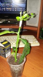 Корни так и не появились,но зато хотим цвести!Обновил срез и поставил дальше укоренятся!
