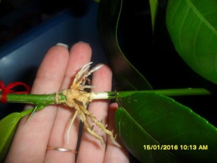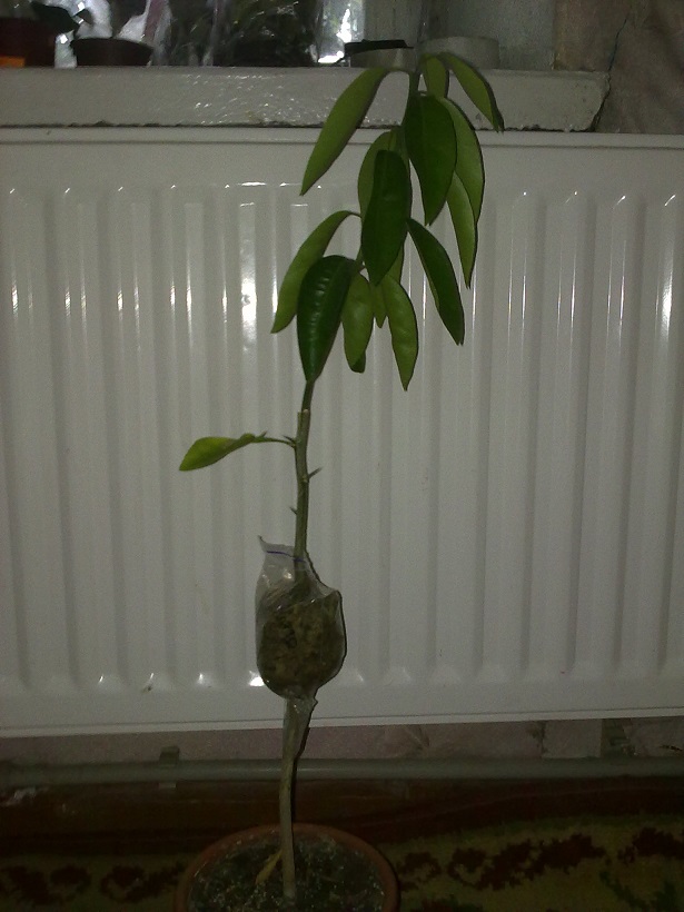 У меня на апельсине Navelate с подвоя пошел росток и я решил не удалять его, а воспользоваться способом воздушной прививки. Сегодня проверял - есть маленький корешок, подожду еще недельки две и буду отделять от основного растения.