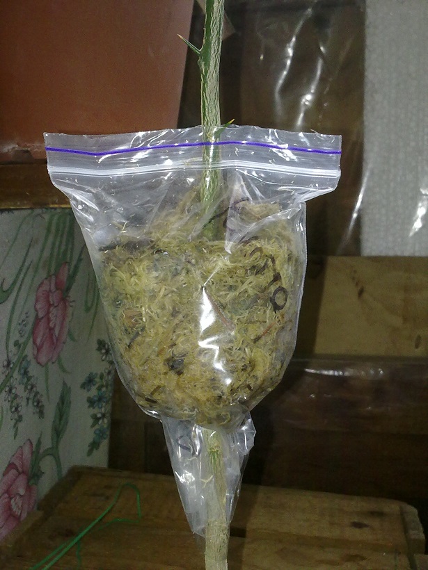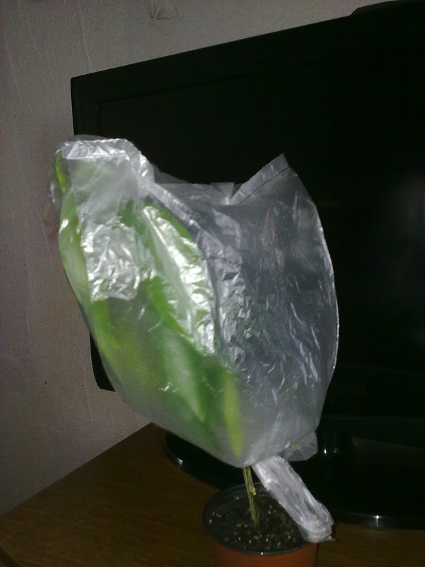 Крону на первое время поместил в пакет, пока корешки хорошо не заработают нужно поддержать хорошую влажность.