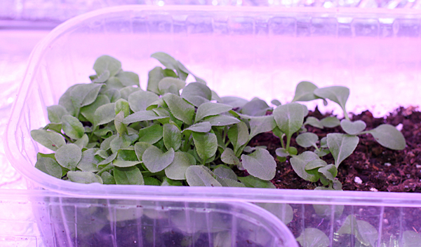 Тут еще жена какую-то траву посеяла, говорит цветы :), на время отпуска поставил в тепличку к цитрусам. Трава вообще вымахала за две недели, в размере листьев прибавила в раза два, и что самое примечательное, перестала тянуться вверх как на подоконнике и начала стелиться по земле... хотя стоит в самом низу, сантиметров 60 от светильника.