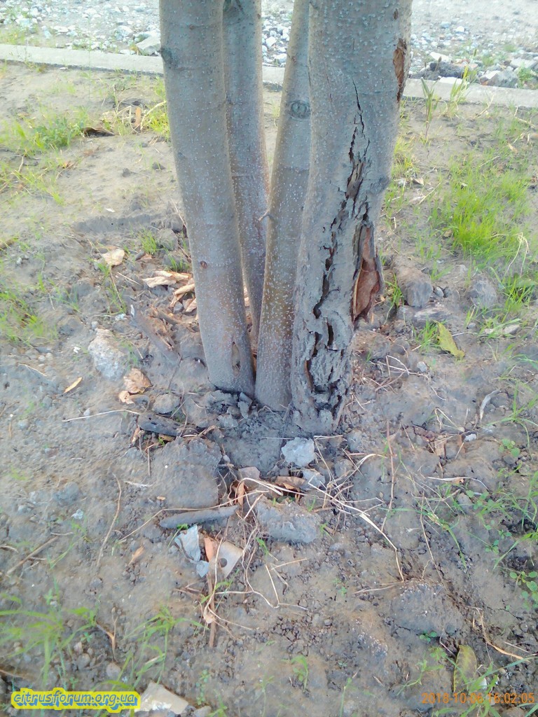 Как я писала это дерево растёт в городских условиях во дворе. Сторона юго-запад. летом было ооочень жарко и его видимо редко поливали (это я так думаю) . Земля сильно пересыхала, а потом резко давали воды.... может ещё и эта причина образовавшейся трещины. Конкурентов кстати рядом нет, а солнцепёк есть.