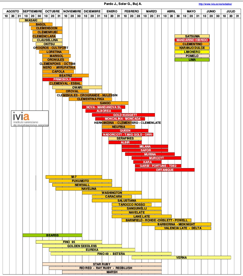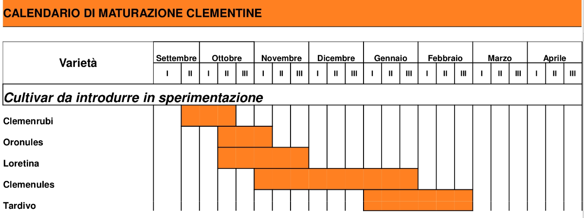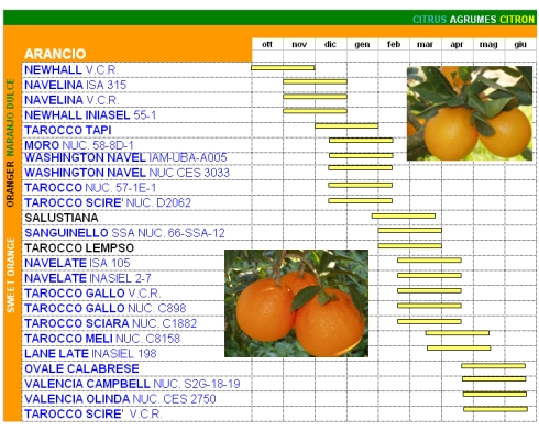 Внесу и я свою лепту. Вот данные по срокам созревания цитрусов на Сардинии.