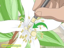 3. Почистіть пиляки та тичинки. Візьміть пензлик і причешіть його до пиляків. Потім перемістіть його всередину і причешіть до кінчика тичинки.