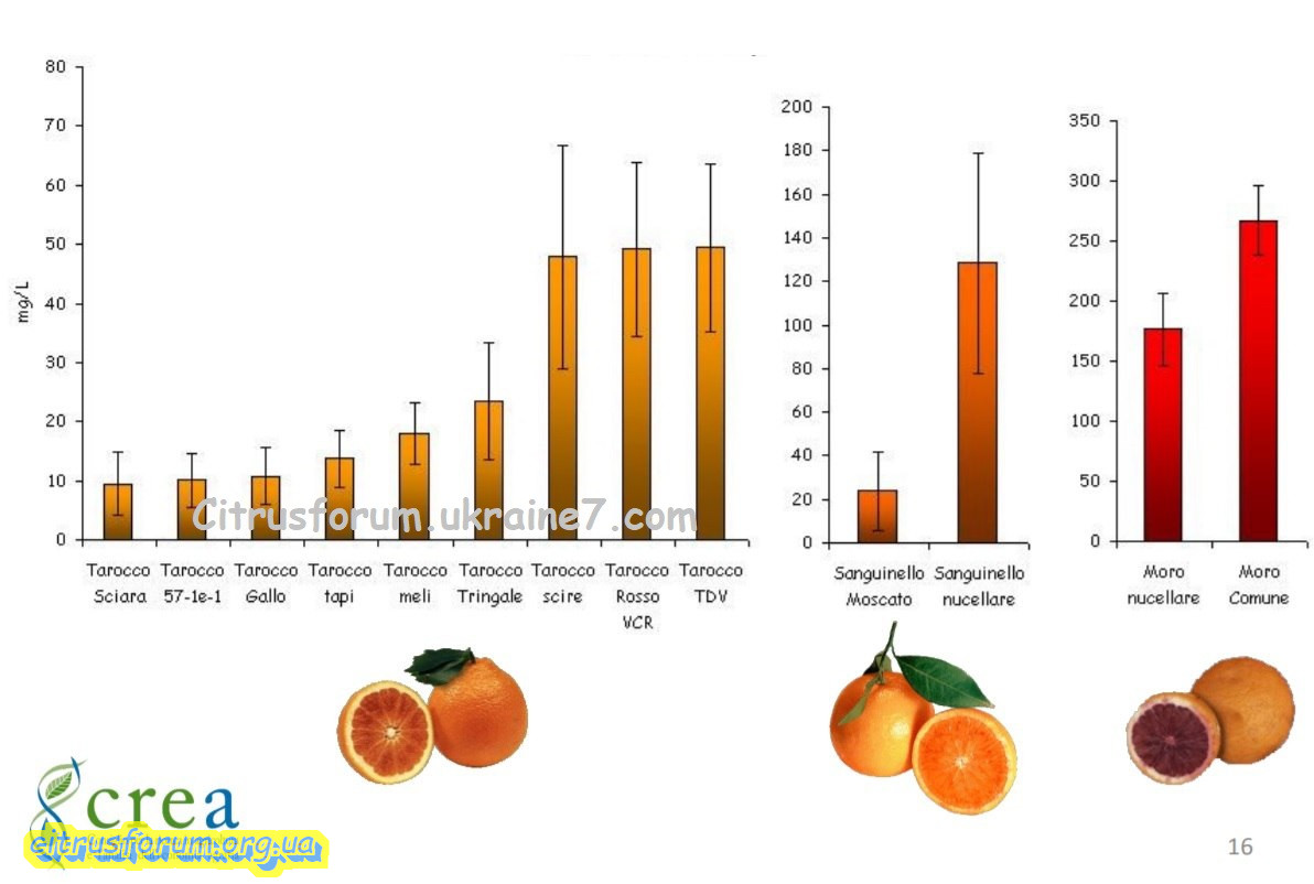 Я думаю, що зараз трохи неправильно було б так вважати, тому що: наша форумчанка Flo (Аліна) ділилась фото, чудовим результатом забарвленням в кривавих сортах, здається це були: Bream Tarocco, Moro, Smith Red Valencia на Macrophylla. Як бачимо на табл. накоплення антоціану щеплених на Macrophylla значно менше, у порівнянні з трилистними.