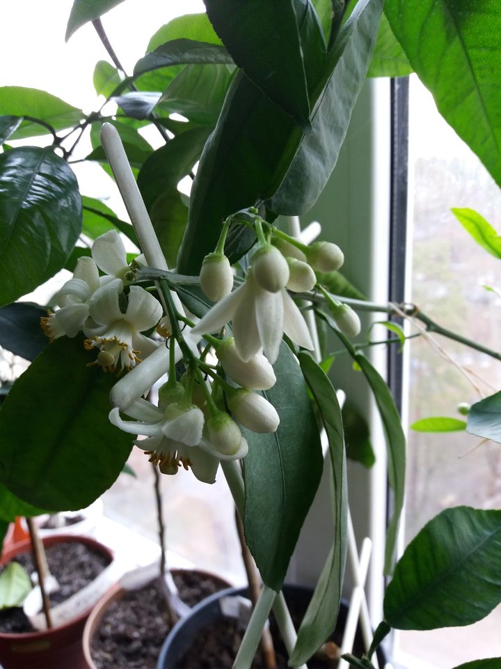 Весна наступила. Цитрусы бутонятся, цветут, не так массово, как в теплицах конечно, но и несколько цветочков для нас в балконных условиях радость уже.