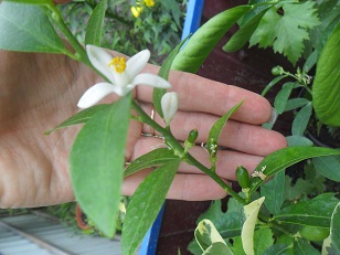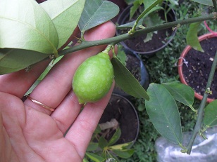 Каффир - лайм, прошлогодняя прививка на сеянец грейпфрута, забутонился в конце июня, в июле процвел, и завязал с десяток плодиков, оставила 4, а дальше пусть сам решает