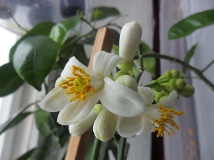 Лимон Пондероза зацвел в конце февраля и завязал два плодика :