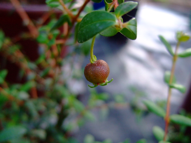 На мирте Угни, фото цветения которого показывал раньше, сейчас зреют плоды. Небольшие, но должны быть съедобные и с земляничным ароматом. Если верить информации из интернета