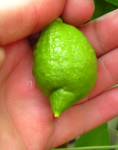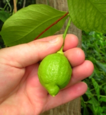 Он действительно совершенно не кислый, даже неспелым. Аромат шкурки приятный, но несколько отличен от лимонного. У тех, кто пробовал, мнения были очень разные, от "так себе" до "очень даже". От лиметты Дольче Романа отличается формой листа и отсутствием законченного желобка вокруг соска. Поэтому сам сосок у большинства плодов скошен в сторону, что особенно заметно у завязей. Говорю "у большинства", потому что плоды получаются разные по форме и размеру. Также у Дольче Романа бергамотовый запах листьев и побегов, а у моего - лимонный.