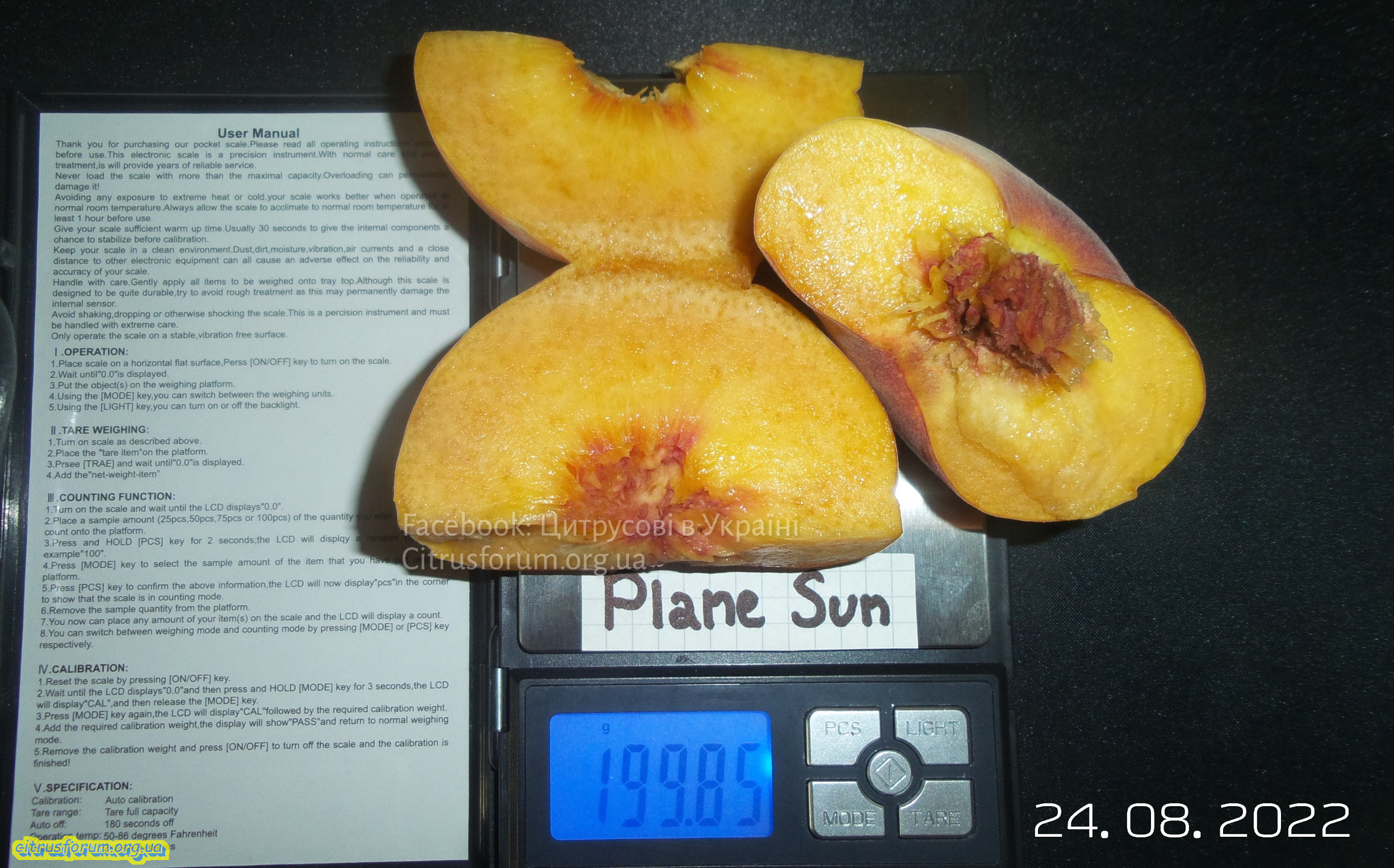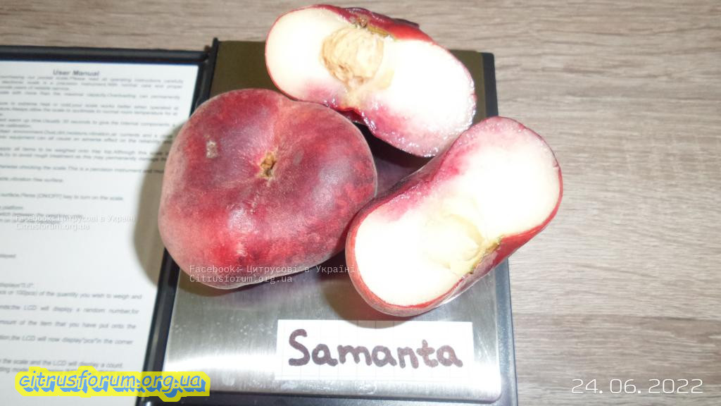 Смак дуже солодкий 14.2%, без кислинки. М'якоть дуже ніжна, м'ягка (не хрустка). Не дуже соковитий. Кісточка маленька.