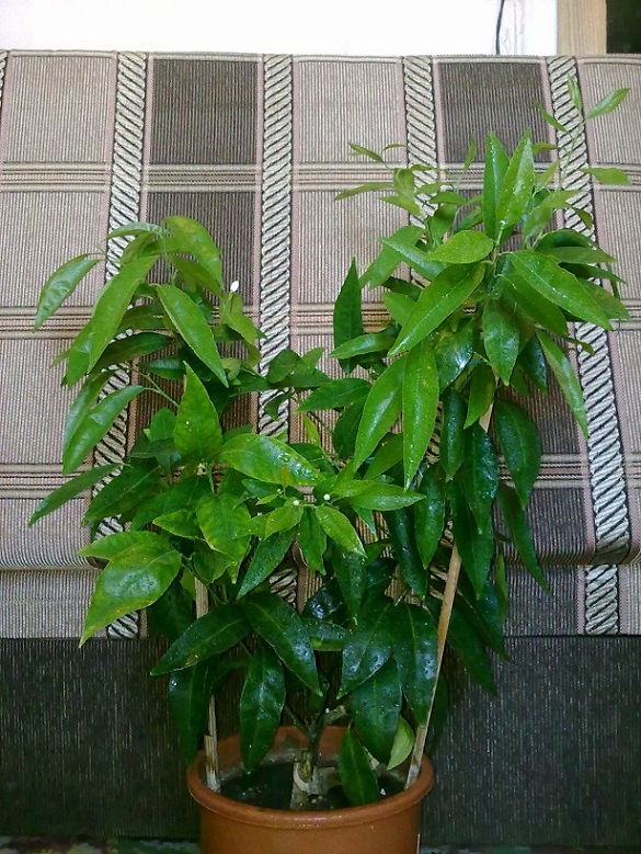 Сегодня на сутки удалось вырваться домой. За 2 недели моего отсутствия цитрусы не пострадали, домашние хорошо выполняют указания по уходу за растениями. На многих начался новый прирост, кто цветет, кто растит плоды. Апельсины сильно отрегулировали количество плодов оставив лишь по одной завязи, возможно сказывается первое плодоношение, а вот Каналикулята сбросила всю завязь и снова поперла приросты.