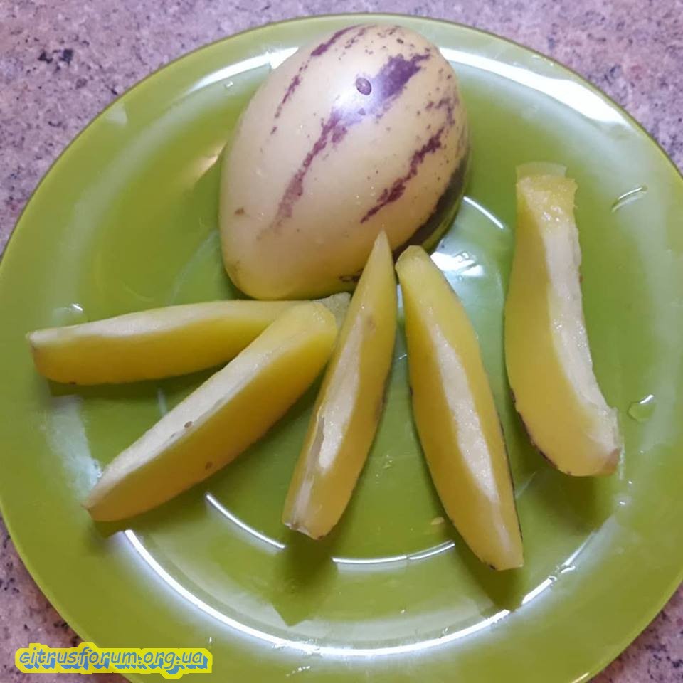 Пепино,очень достойное растение для выращивания как в ОГ так и в контейнере. На вкус,запах и сладость -дыня.
