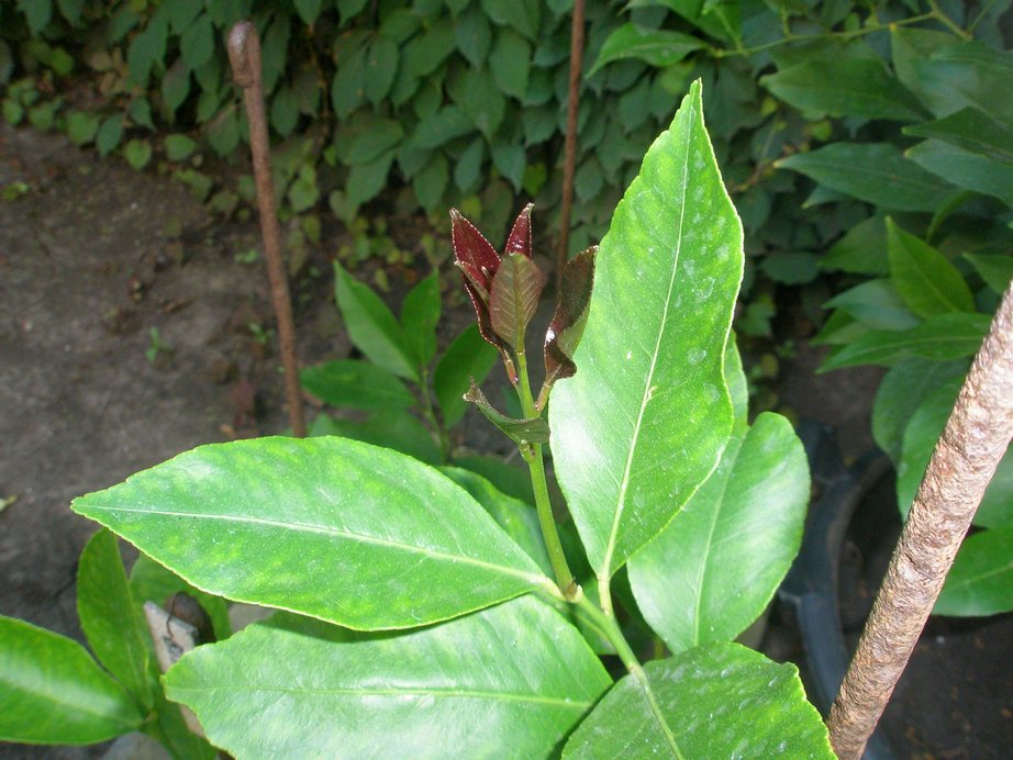 C. limon (неизвестный итальянец 1). Листья более закруглённые, чем у второго и немного "пропеллером". Очень сильная антоциановая окраска у молодого листа.