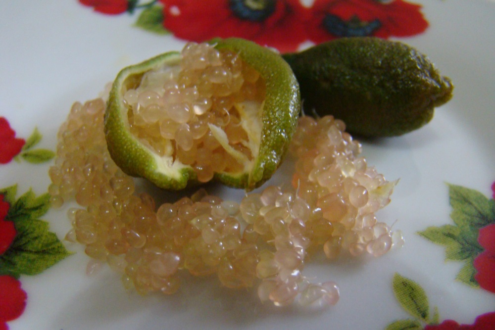 Не доглядел я немного свой фингерлайм, точнее не ожидал, что плоды на нем дозреют так быстро. Поэтому на дереве не сфотографировал, но сфотал готовый так сказать продукт. Какой будет икра я не знал, оказалась розовой, что очень порадовало!