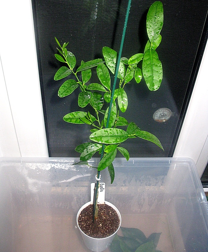 ........На сегодня растит прирост, после которого будет иметь уже достаточно листьев для первого плодоношения. Очень надеюсь на первое цветение и плодоношение в этом году. Не захочет цвести в этом сезоне - продам, что бы не мулил глаза.